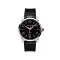 42 mm stainless steel watch with black dial, red-gold plated hands and numerals, automatic movement, date display, black alligator-skin strap